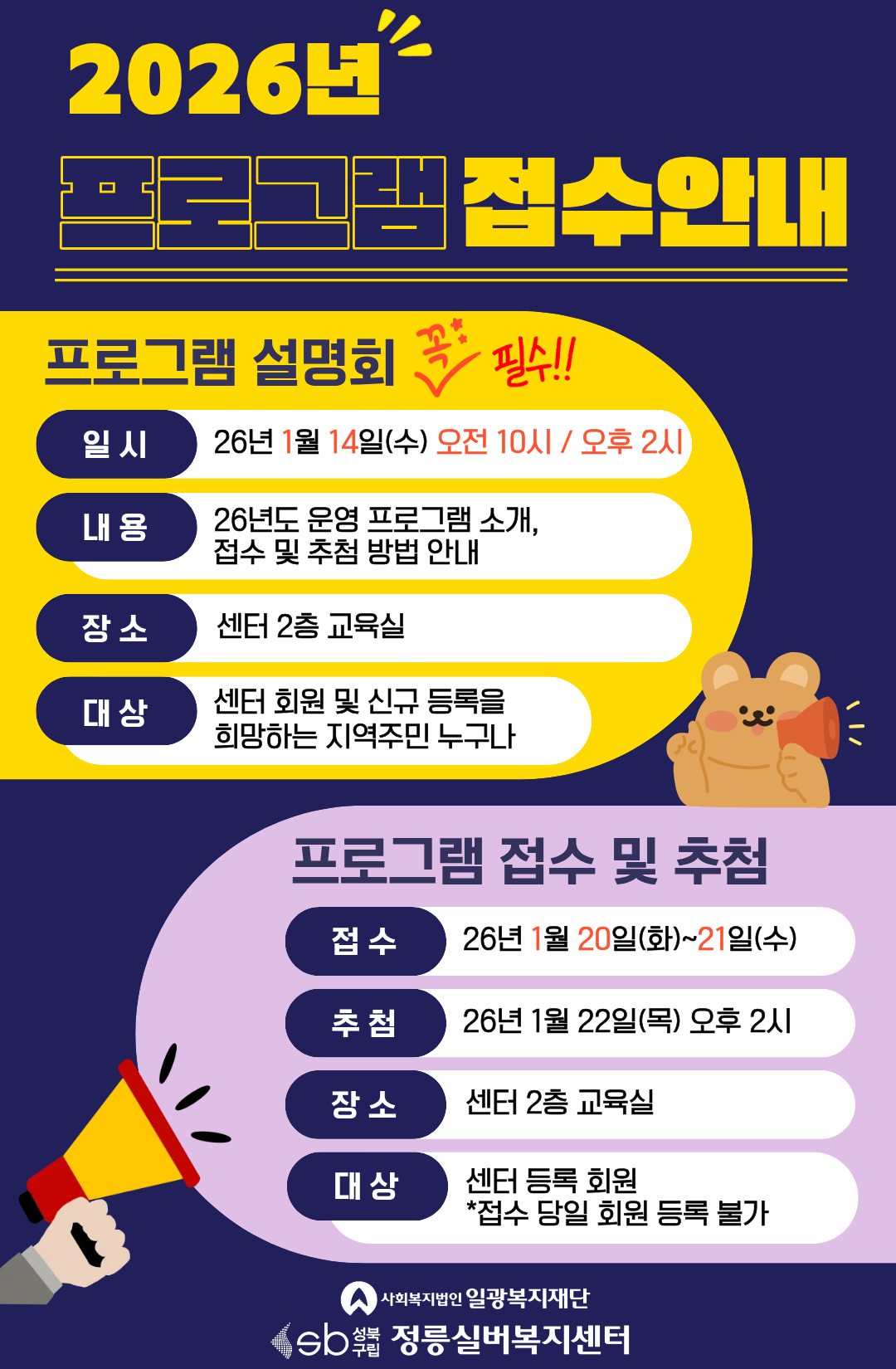 * 2026년 프로그램 접수를 희망하시는 분들은 프로그램 설명회에 꼭 참석해 주세요.*