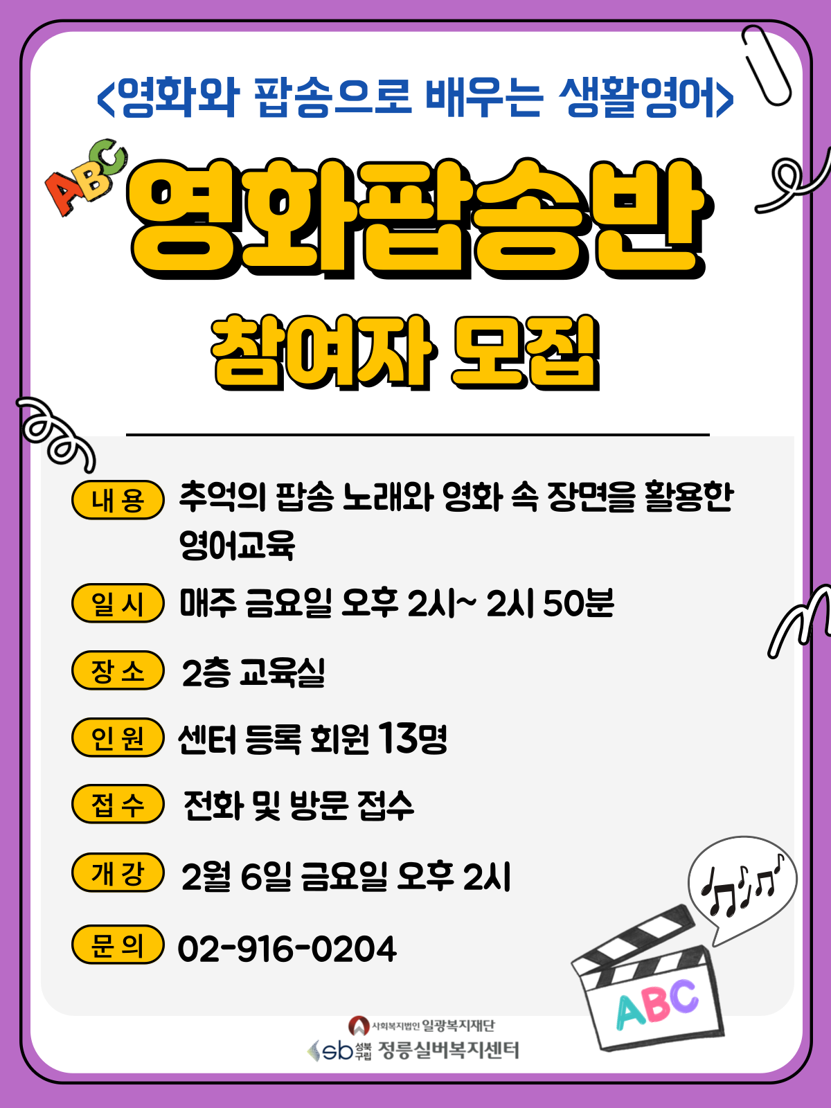 <영화팝송반 참여자 모집>