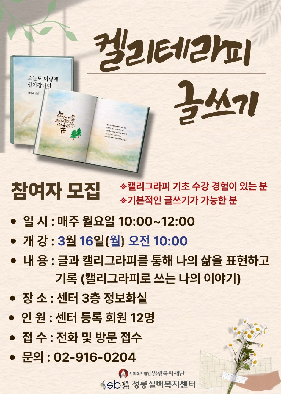 캘리테라피 글쓰기 참여자 모집