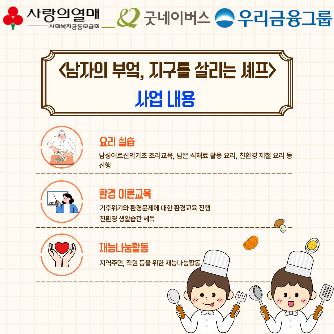 💻환경 교육, 🥗요리실습, 🤝재능나눔활동 등이 진행될 예정입니다.