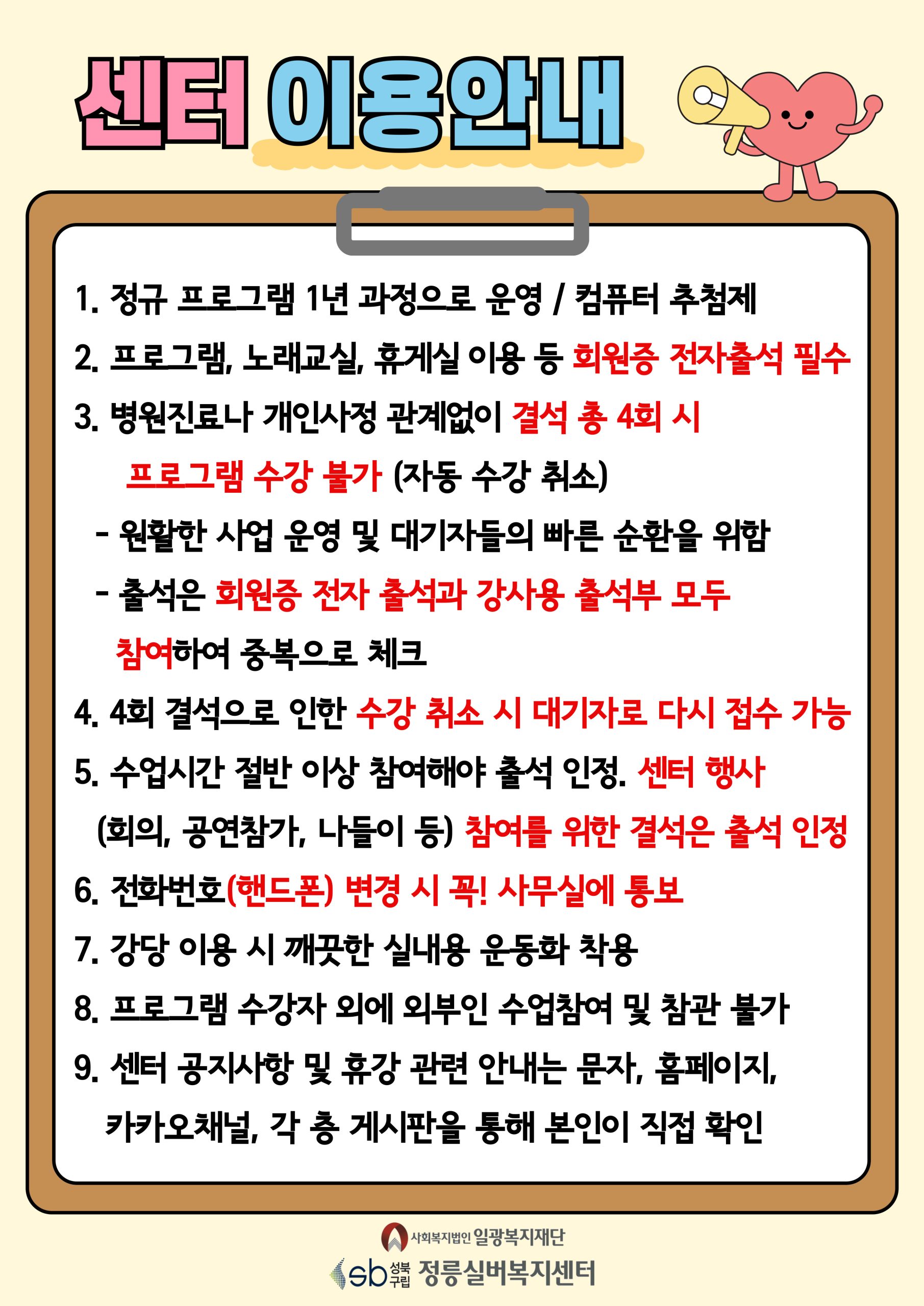 구비서류 : 주민등록증, 사진 2매 ◈ 센터 이용시 개인실내화 지참 ◈